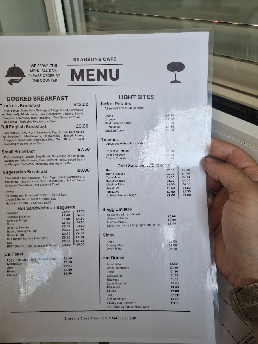 Welcome to Bransons Cross Truck Park & Bransons Cafe, a hidden gem nestled just off the M42 in Redditch. This truck stop offers not only ample parking but also a warm, welcoming atmosphere for all travelers. The cafe shines with its immaculate cleanliness and friendly service, making it a favorite among truck drivers.
